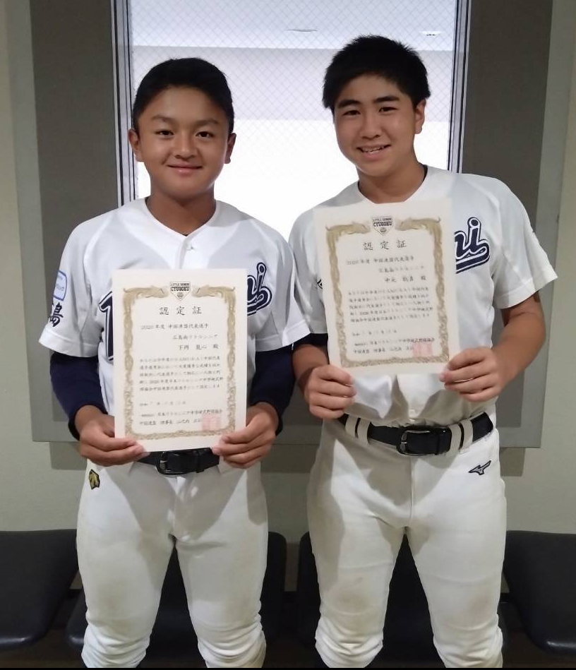 2年生の中元聡真くん、1年生の下岡龍心くんが広島南シニアより